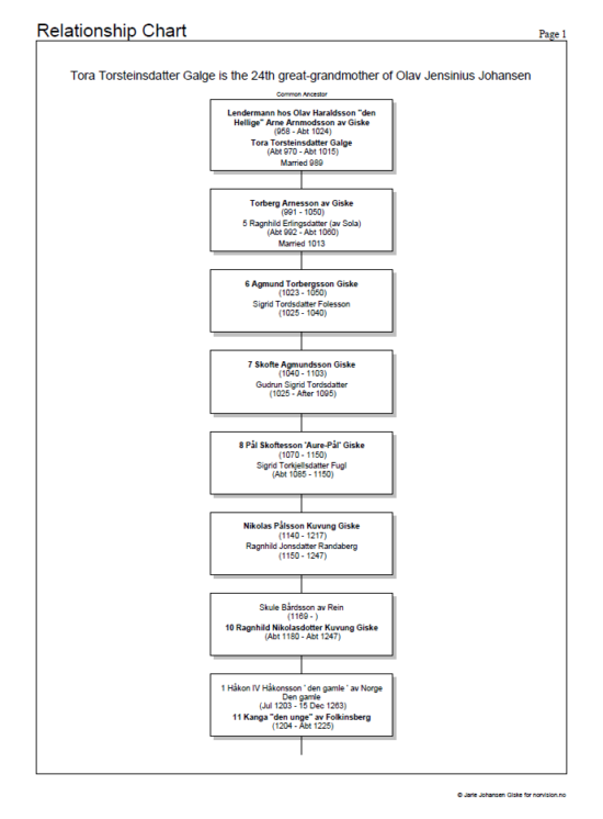 If there are a number greater than 100 in front of the name, than this person is of the Queen Victoria bloodline direct to Perez ben Judah (king Davids bloodline), and some and/or Zerah ben Judah. It shows this persons ancestry goes into the same bloodline from Judah ben Jacob-Israel. All of the Giske Clan is also of the Hårfagre-Fairhair bloodline, as Giske Clans mother Tora Galge is great grandchild to Hårfagre-Fairhair. All of Giske Clan is also of the same bloodline as Queen Victoria to Perez & Zerah ben Judah, as mother Tora Galge is from that same bloodline as Queen Victoria.
